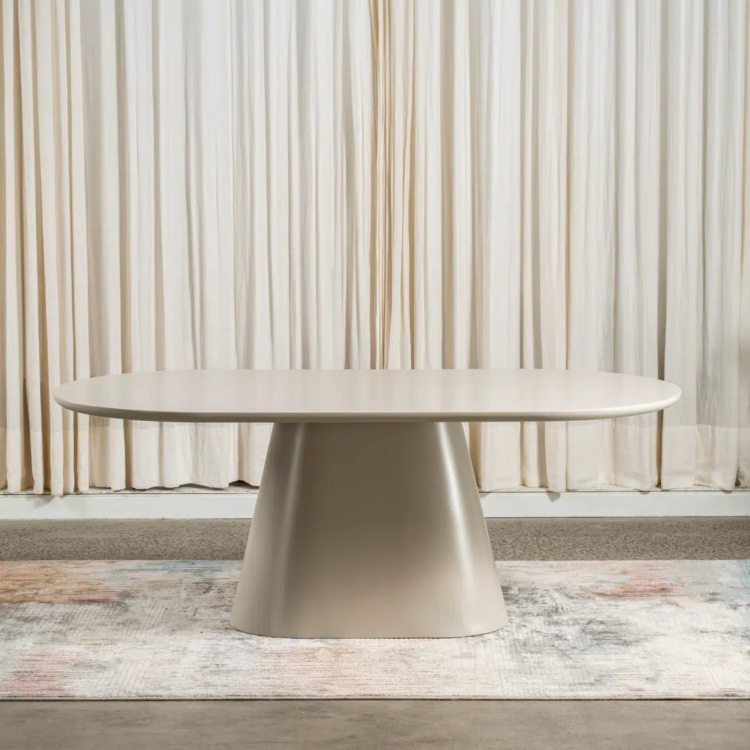 Transform your dining area into a conversation-starting centerpiece with this striking dining table. Its modern silhouette combines a vibrant Citrus or subtle Putty painted finish, offering versatile styling options that reflect your personal taste. The clean lines and contemporary design ensure it becomes the focal point of any room, seamlessly blending with both minimalist and eclectic interiors.