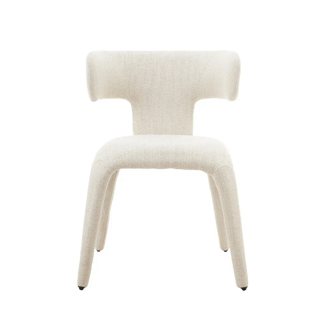 This dining chair blends modern aesthetics with classic sophistication, featuring a minimalist silhouette and cream upholstery that suit both contemporary and traditional spaces with timeless appeal.