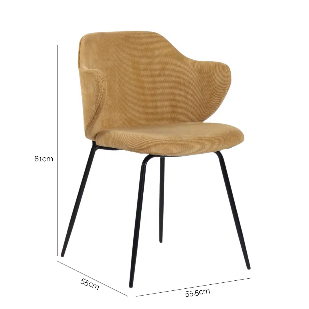Veda Corduroy Dining Chair – Mustard Yellow with Metal Legs (Set of 2)