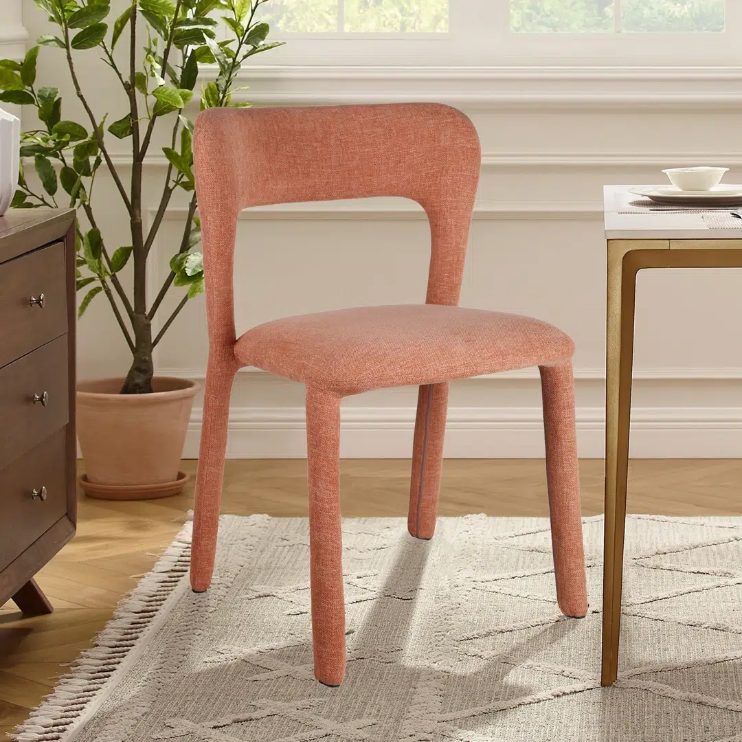 This dining chair exudes timeless elegance with its minimalist design, seamlessly blending into any home decor style from modern to traditional. The soft polyester fabric upholstery in a striking pink hue adds a touch of sophistication while ensuring a comfortable seating experience for guests. Its streamlined silhouette and neutral color palette make it a versatile choice for both casual meals and formal gatherings.