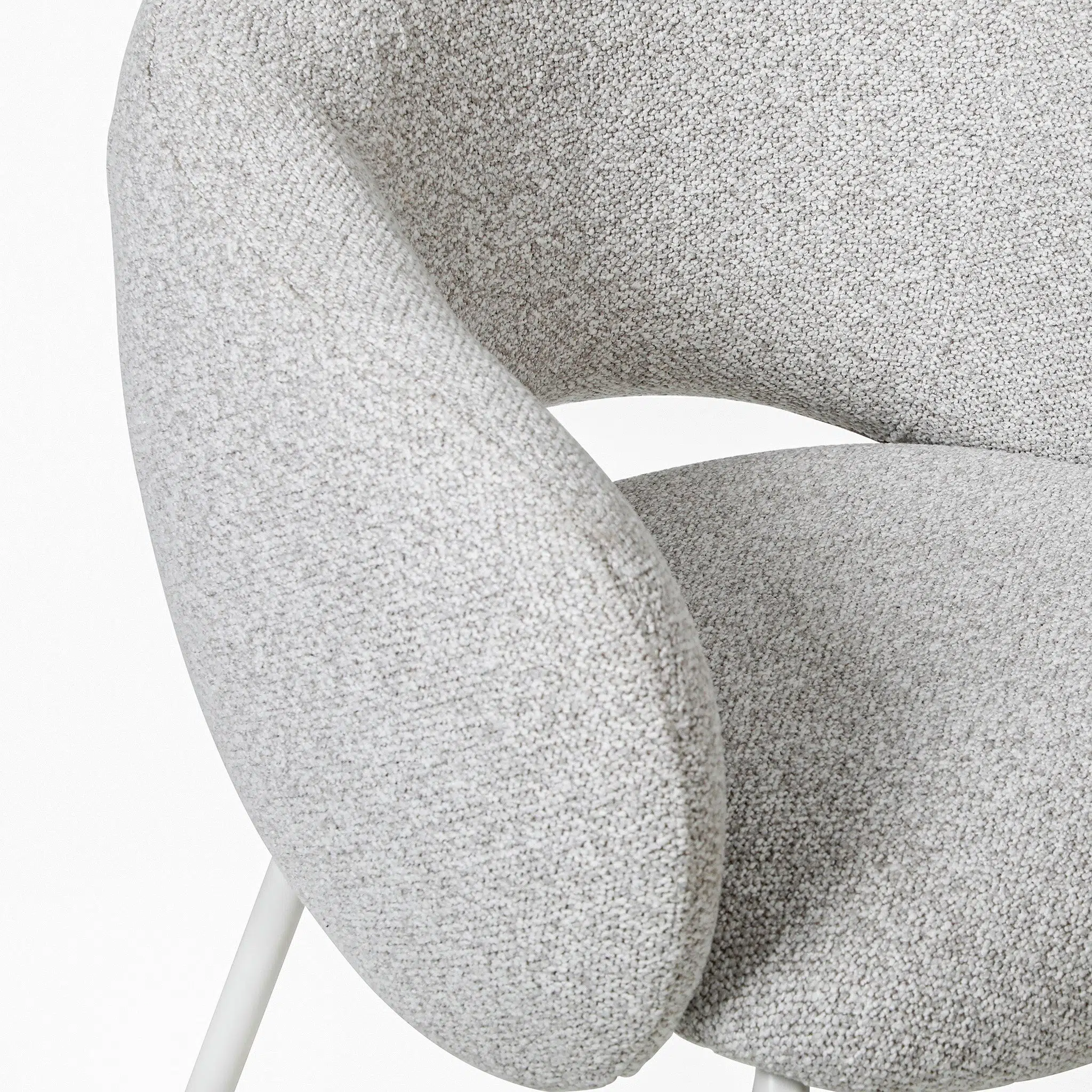 This set of two dining chairs blends contemporary elegance with functional artistry, featuring a soft clay grey polyester upholstery that introduces understated sophistication to any dining environment. The sculptural silhouette, defined by its curved backrest and open-back cut-out detail, creates a visually airy yet striking focal point—perfect for open-concept living areas or intimate dining corners.