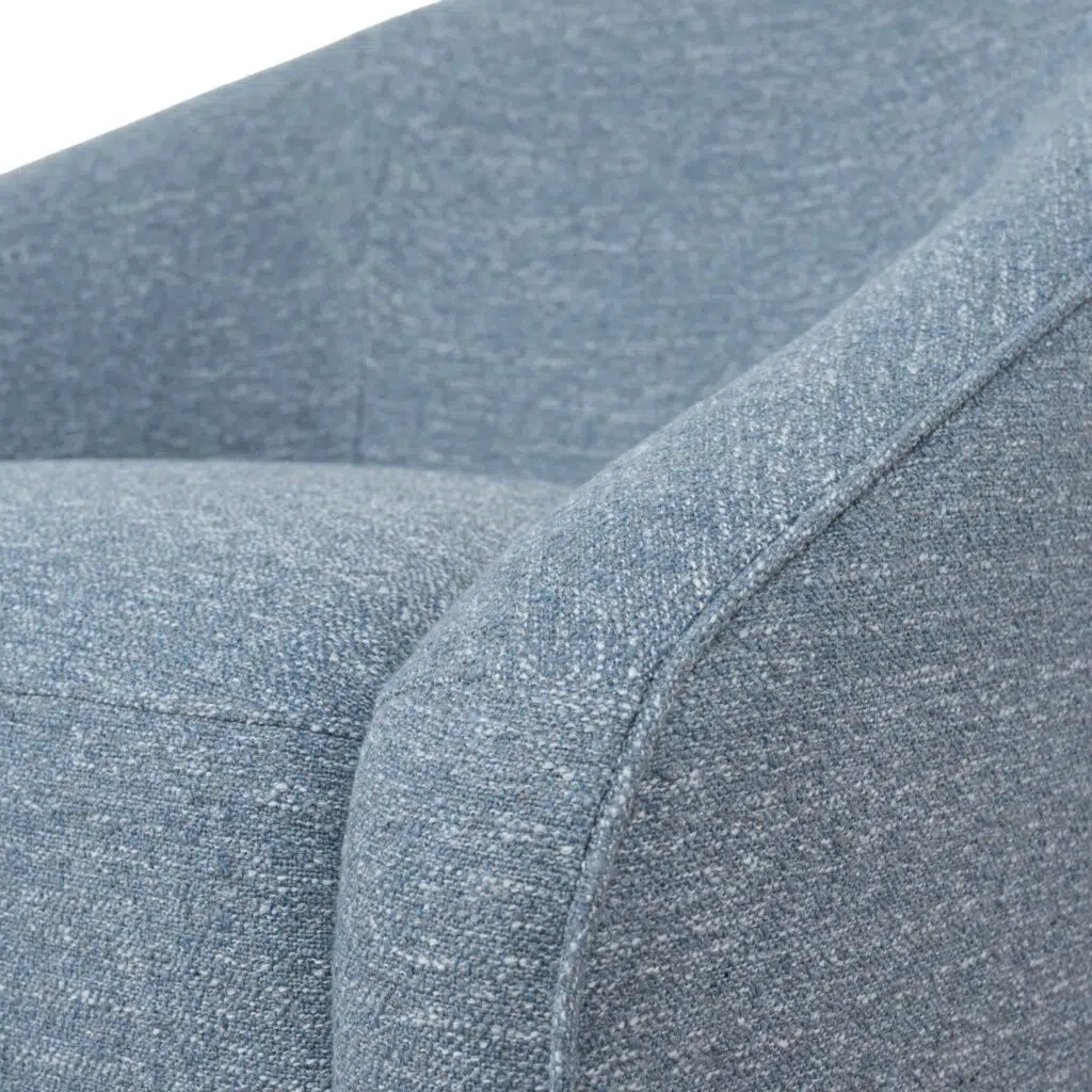 The Misty Blue armchair features a smooth, flowing silhouette that creates a cradle-like embrace through its curved backrest and sloping arms. Its contemporary profile combines soft contours with refined craftsmanship, delivering a visually striking yet understated statement for living rooms, reading nooks, or lounges. The textured misty blue polyester upholstery adds a vibrant yet sophisticated tone to modern or traditional interiors.