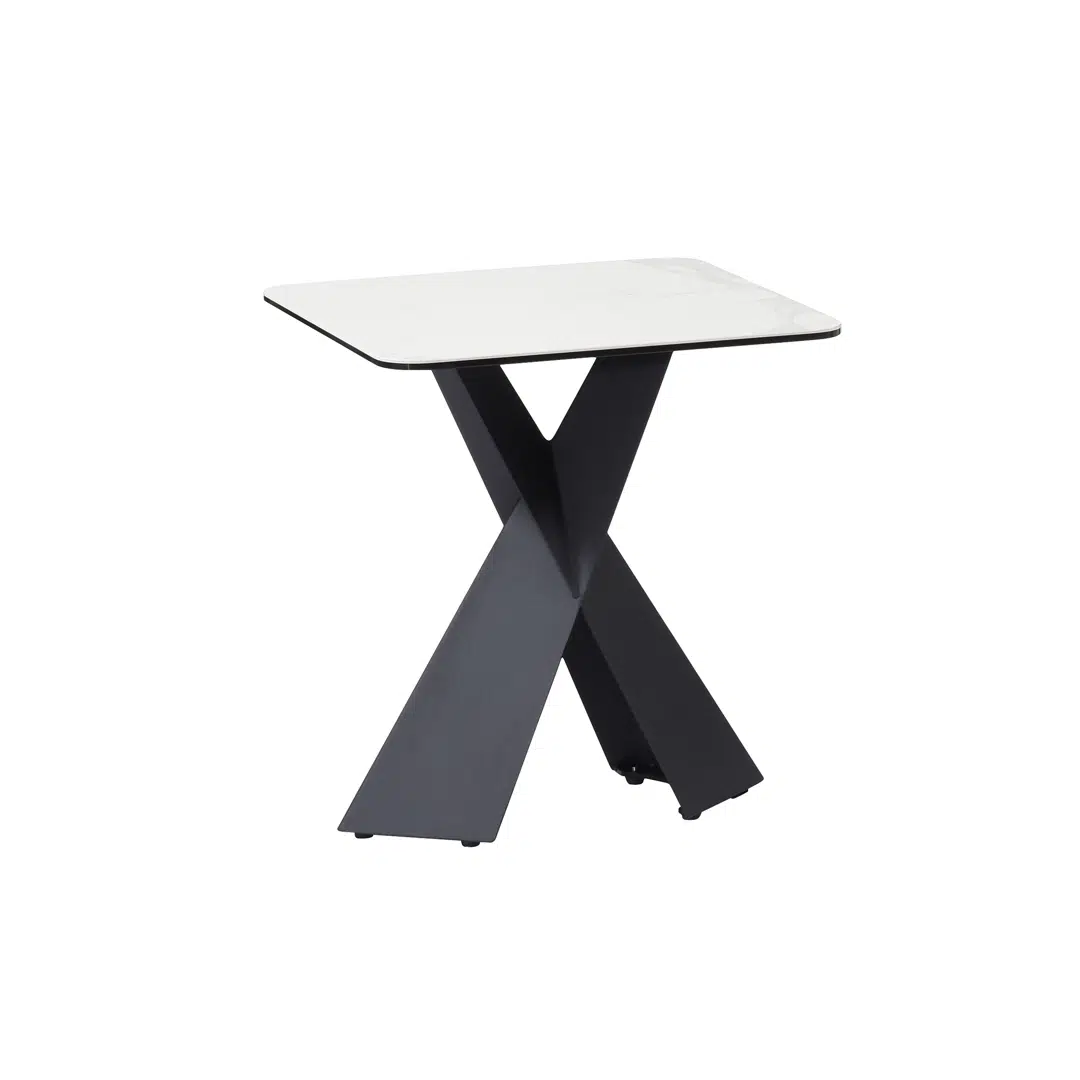 Crafted with a black powder-coated steel frame and a 3mm ceramic-topped tempered glass surface, this side table combines robust durability with contemporary elegance. The scratch-resistant ceramic finish mimics the luxurious texture of natural marble, while the sturdy metal frame ensures long-lasting stability for daily use in living rooms, bedrooms, or office spaces.